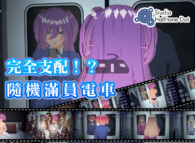 《完全支配!?ランダム満員電車》|製作社團:ハーフトーンドット 在無力的日子裡漂泊的男人,在電車上遇見了一名女子。 「想要被治癒」──從這一瞬的渴望開始,一場倒錯的支配遊戲拉開序幕。 以電車為舞台的倒錯模擬遊戲,核心在於「支配」。 在有限的時間內,不斷選擇與行動,使女子逐步屈服。 ※內含VR版以及一般版
