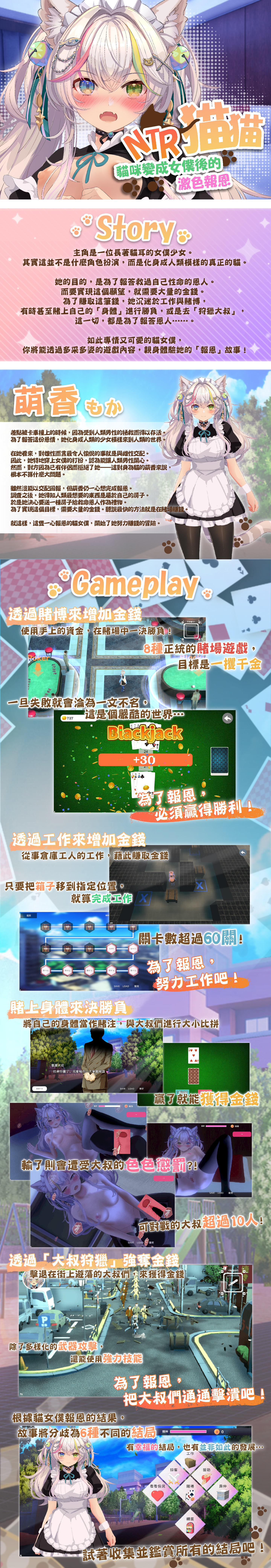 《寝取りネコ~メイドになった猫の激エロ恩返し~》|製作社團:ハーフトーンドット ★「真正的」貓女僕 主角是一名戴著貓耳的女僕少女。 其實那並不是什麼角色扮演,而是能變身成人類模樣的真正的貓。 她的目的,是要報答曾經拯救過自己性命的恩人。 為了籌到足夠的錢來完成這份恩情, 她拚命工作、沉迷賭博,有時甚至會賭上自己的身體,或是去「狩獵大叔」。 一切,都是為了報答恩人……。